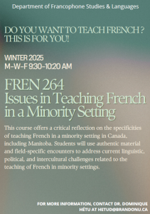 I have been teaching undergraduate courses since 2008 and have acquired significant experience teaching literary and cultural studies as well as the French language and second-language acquisition in a minority setting. I have taught those topics as well as advanced research skills at Université de Sherbrooke (2008-2016); comparative literature at Université de Montréal (2014); Canadian, Québécois, and French literature as well as French language at the University of Alberta (2017-2020); and Québec and French literature courses and French language courses at Athabasca University (2018-2020).